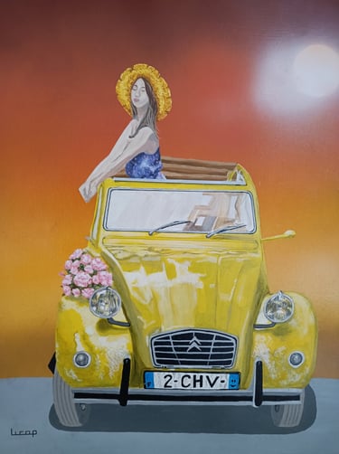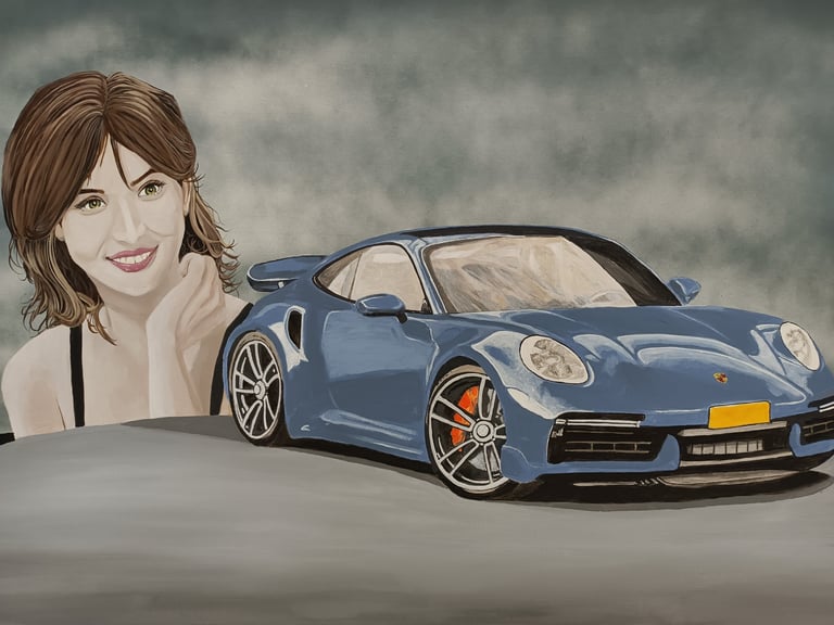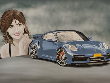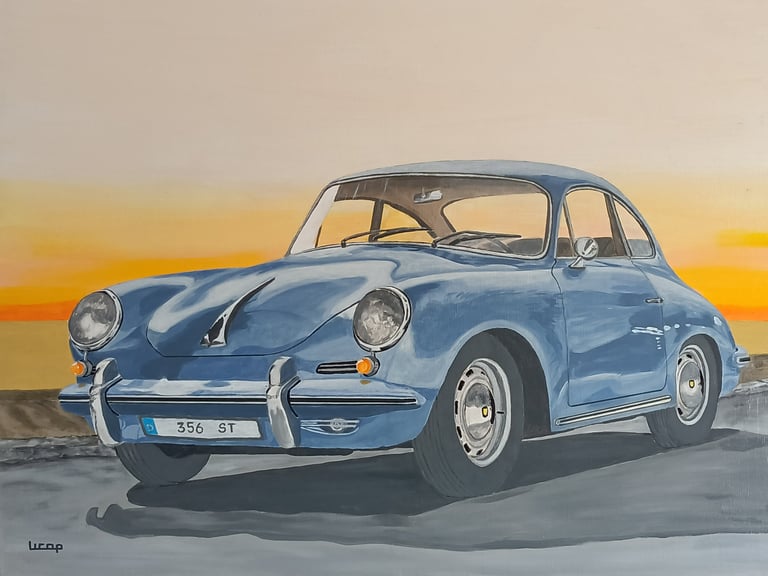 "Porshe 356 Blue" Acrylic Toile coton 80x60cm